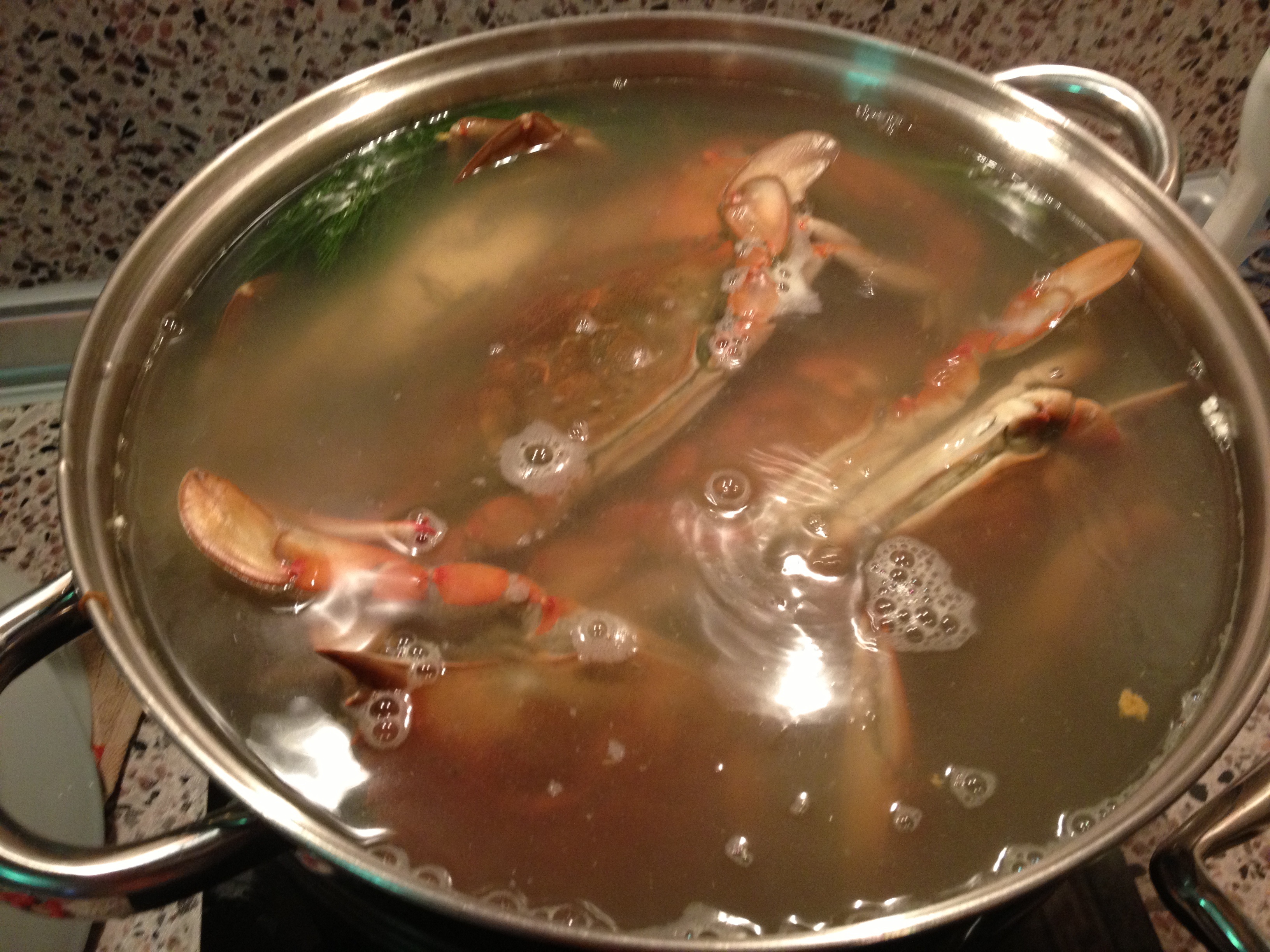 Варил я их так, сварил сначала для них "бульон", т.е закинул в воду пару пучков укропа, гпару листьев лаврушки и соль, сварил это все, ну а уже потом закинул крабов, 5-7 минут.А далее с'ел.