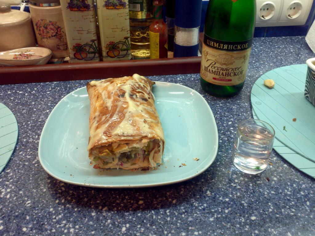 Должна быть морковка по-корейски и сыр, первую я в магазе не обнаружил, сыр на фото не попал-