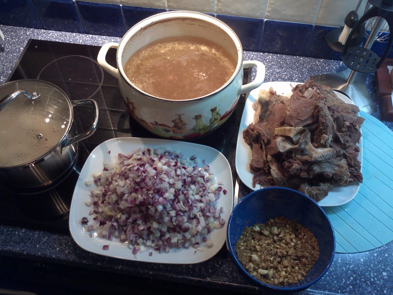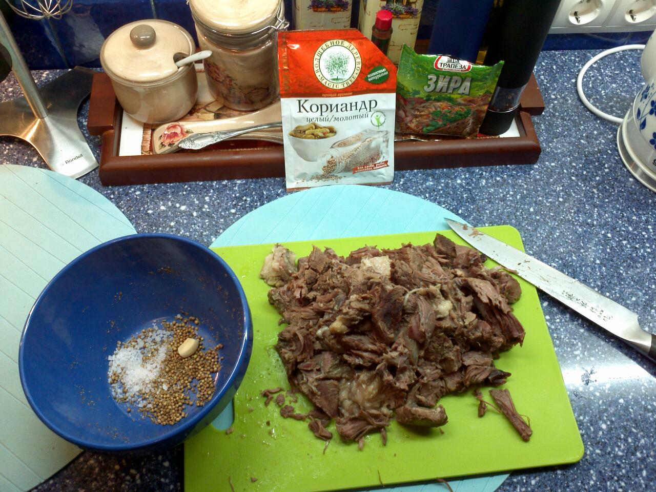 Достаем мясо из бульона, его получилось 1:1 с жижей:)