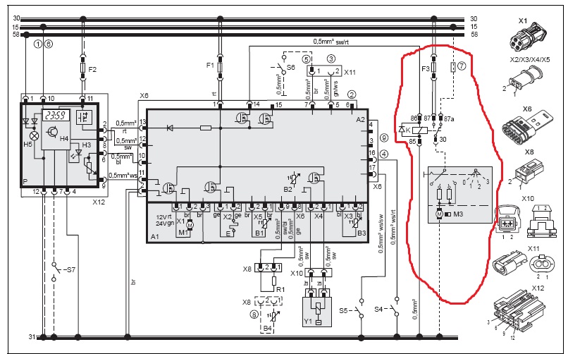 58 клемма - это сигнал о включенных габаритах - при включении оных включается лампа освещения кнопок и дисплея таймера (Н5 на схеме).