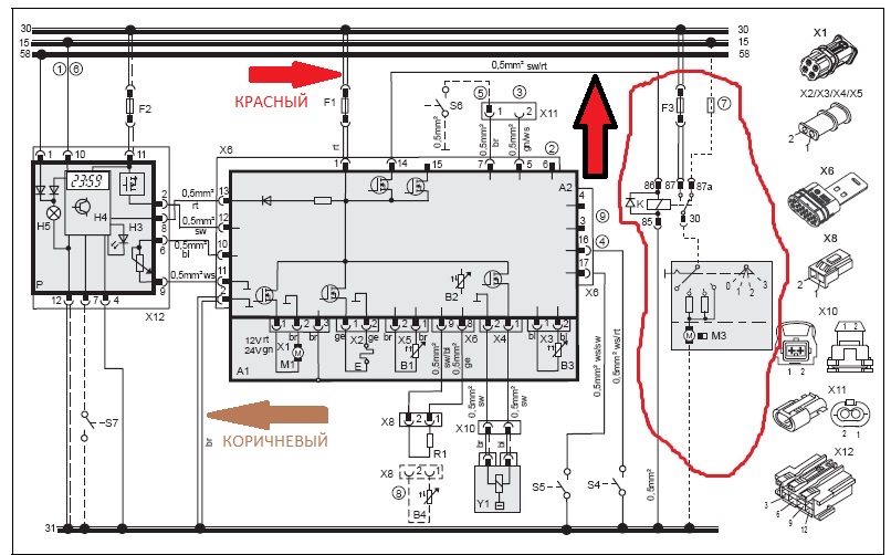 чёрный с красной - включение вентилятора печки - ты вроде не хотел включать.