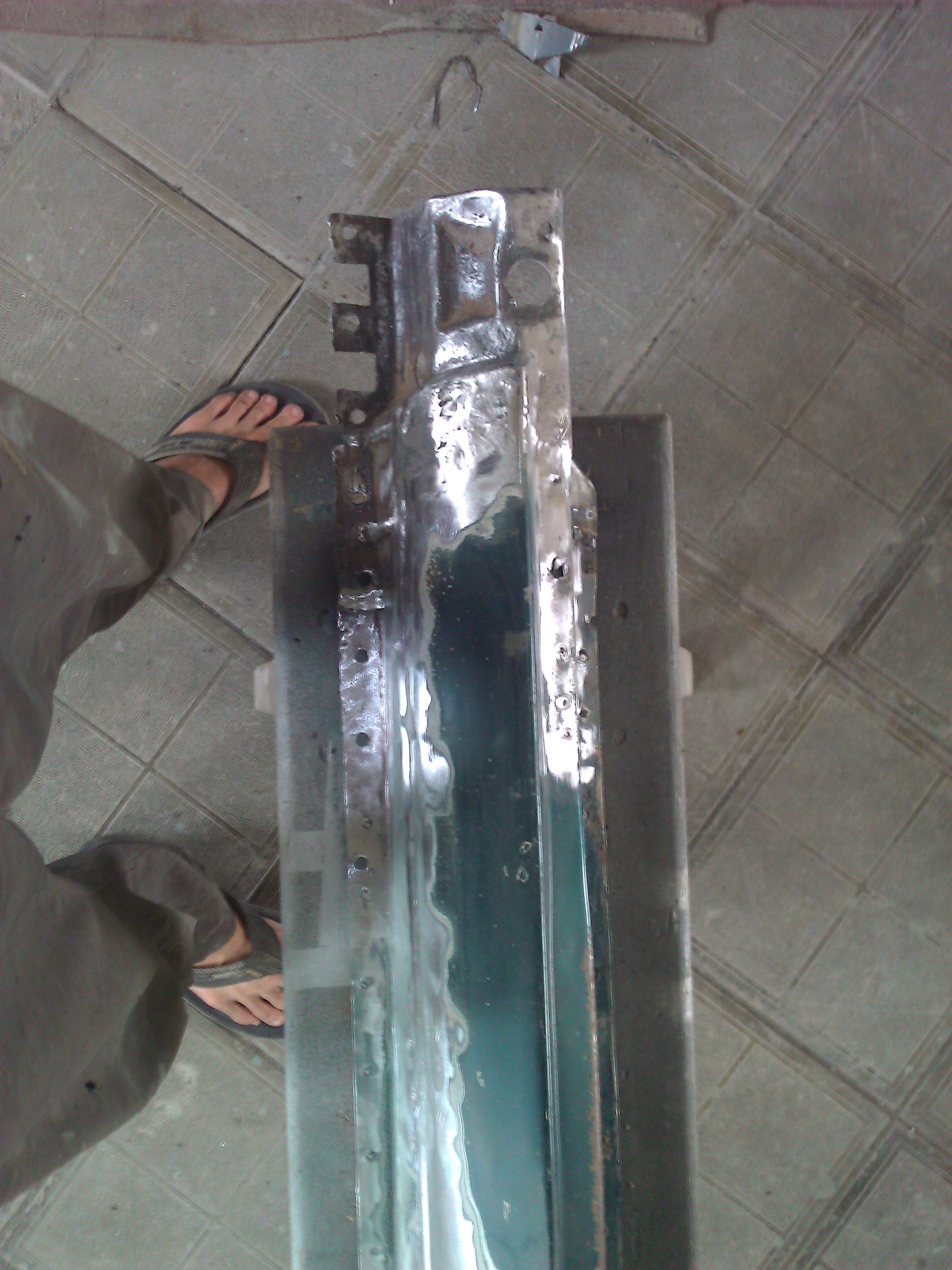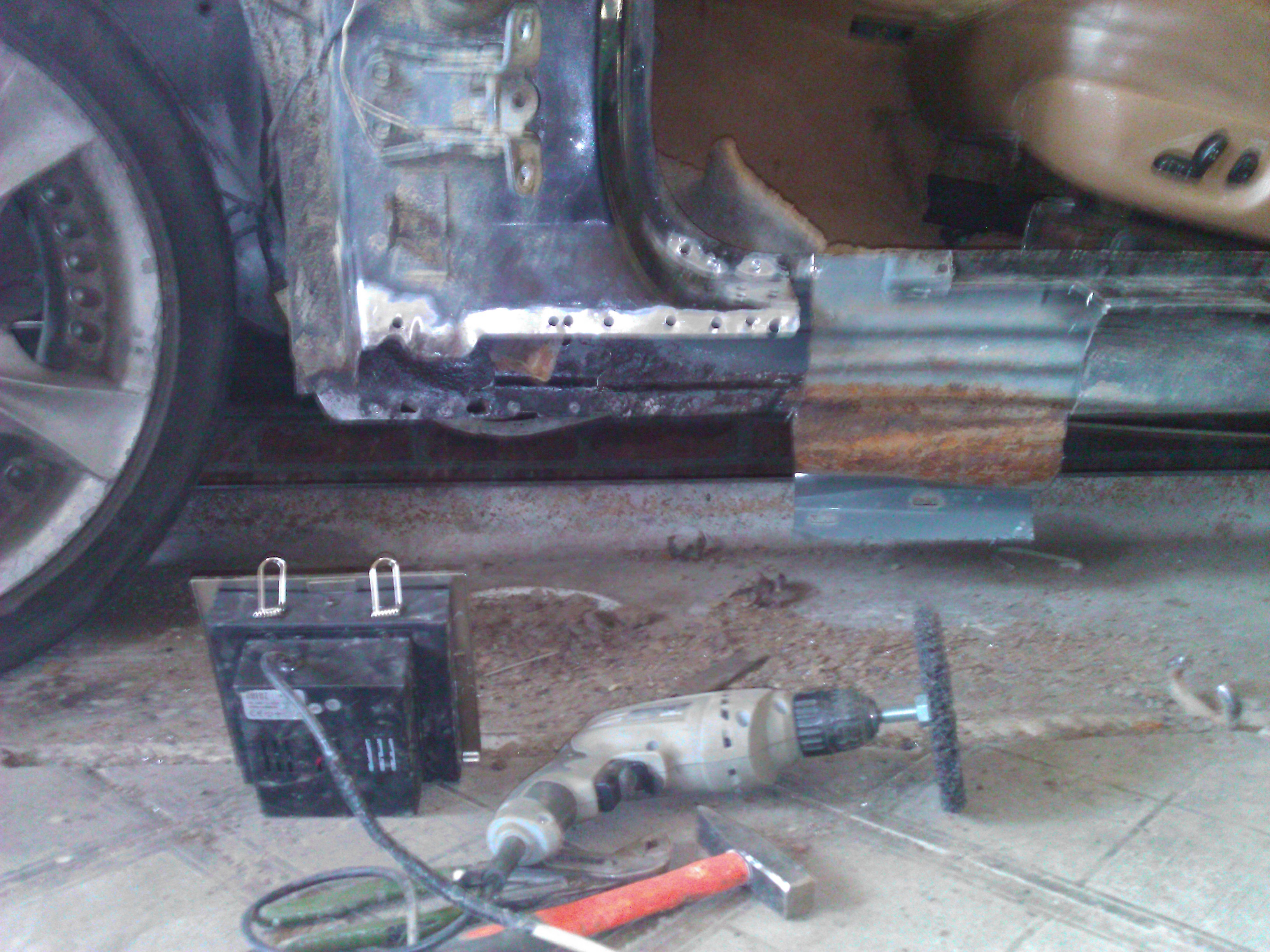 Итак, за сегодня успел до конца снять старый мятый порог, убрал ржу, подготовил. Новый порог до конца востановил и тоже подготовил. Завтра буду примерять его вместе с дверью от зелёного донора так как она не мятая, не ржавай и самое главное заводские ручки, не то что у меня кто то вкорячил с девятки евро гавно. А вот с правой чуть по другому придётся поступать. На доноре она сгнила снизу, моя же наоборот в нормальном состоянии поэтому было решено переворить просто место под ручку с донорской двери.