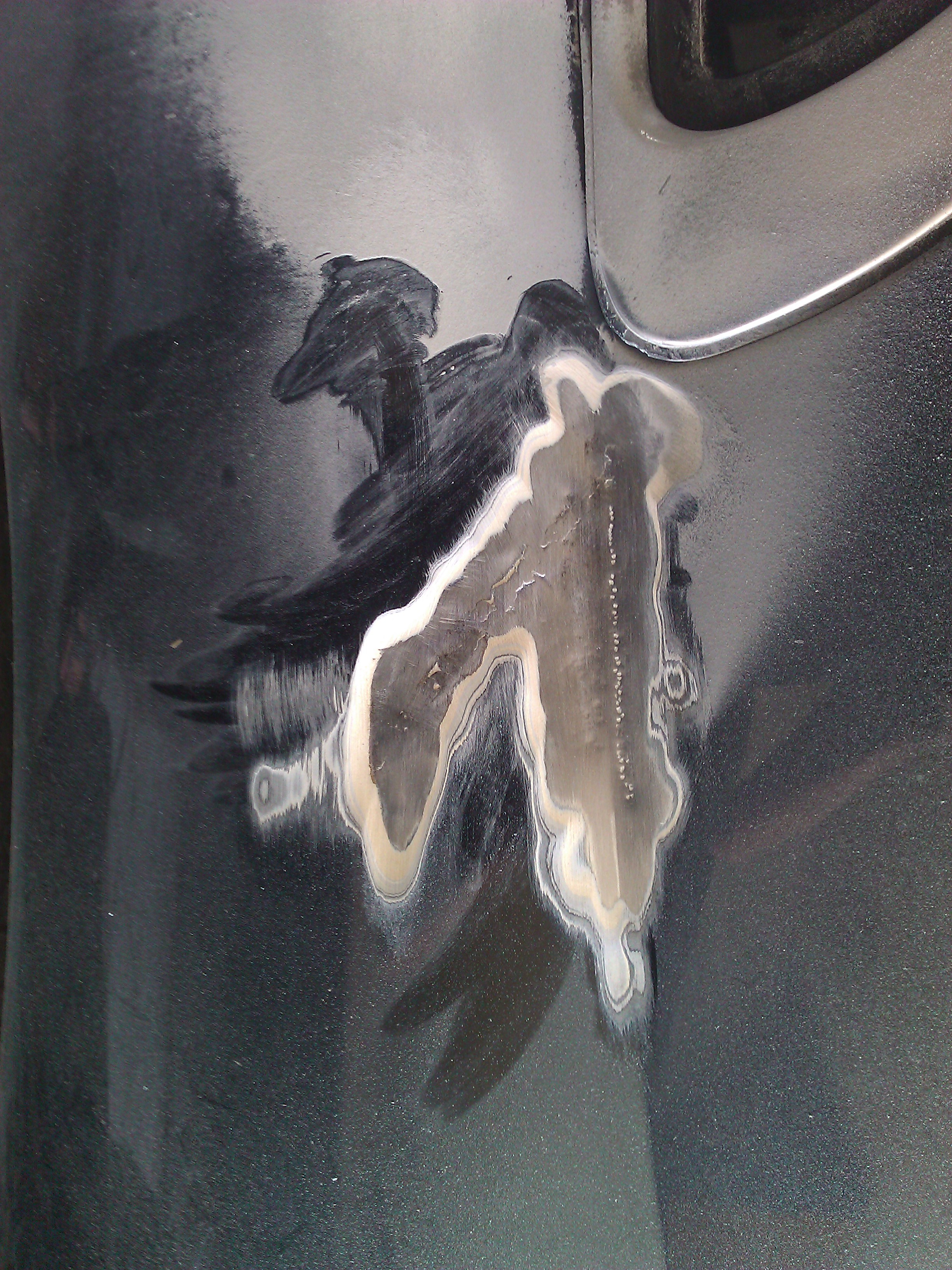 Заднее левое крыло меня конечно расстроило. Оно вроде новое но менялась половина и на стыке без грунта положили толстый слой шпакли. Пока в раздумьях как лучше сделать, но склоняюсь к тому что снять аккуратно с донора и приварить себе. По крайней мере не будет килограммового слоя шпакли на стыке двух крыльев. Жду советов