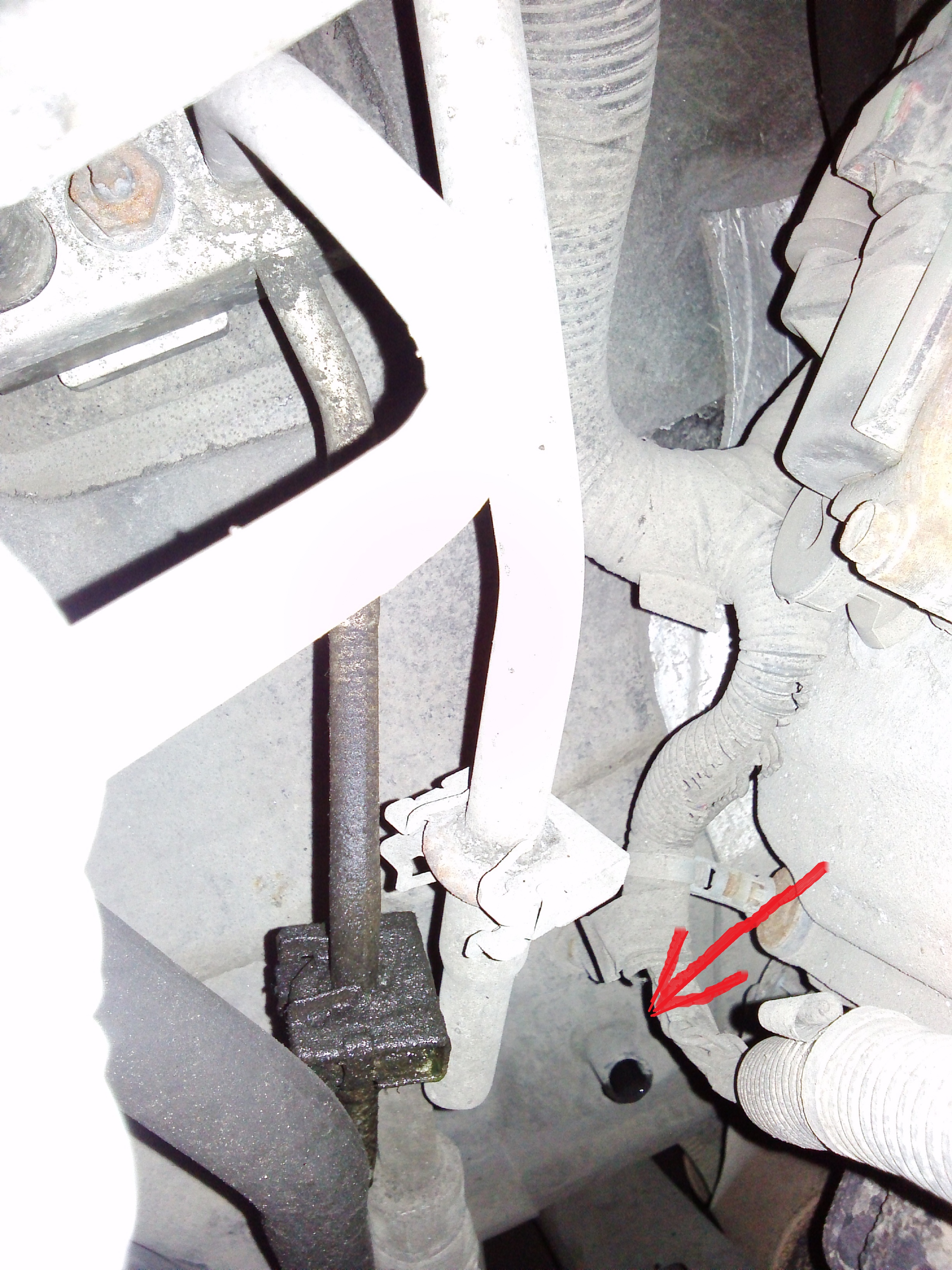 взгляд в подкапотное пространство, левая сторона двигателя. Тут еще не видно эту трубочку. Она прячется за шлангами.