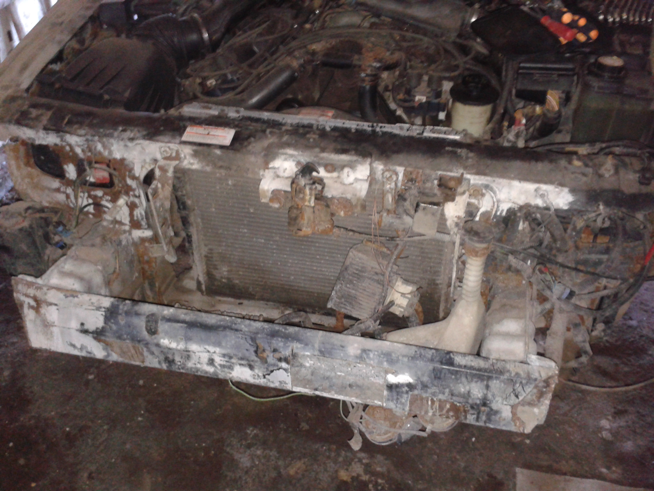 Авария случилась))) Еще до того как ее купил. Был удар в правую сторону морды (телевизор, панель под фильтром). Вытянули как смогли, но там все ржавое как сито. Плюс ко всему видимо еще задним крыльям досталось, так как их переваривали участками, но сделали это через ж..у. Фото для наглядности.