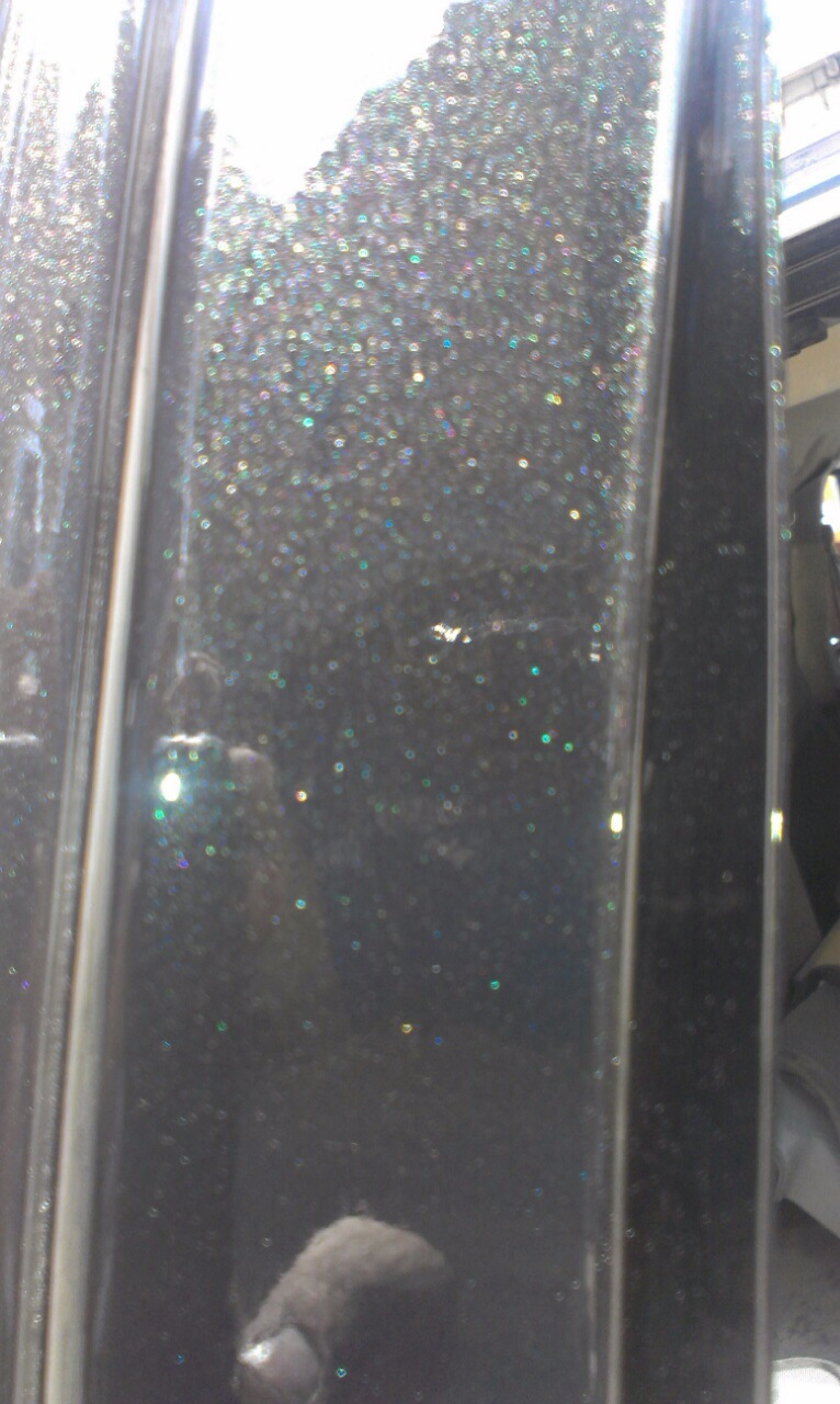 При осмотре выявили мелкие недостатки. Трещина на лобовом стекле, водительская дверь была когда-то заменена и не совсем в цвет окрашена. На приборке красовался "чек". На сиденьях были одеты отвратительные чехлы, на руле красовалась оплётка ( терпеть не могу ). Так же стояла нештатная балалайка, вместо двух дин, однодиновая. Штатный брелок от сигнализации был в таком состоянии, что в руки брать его не хотелось :)