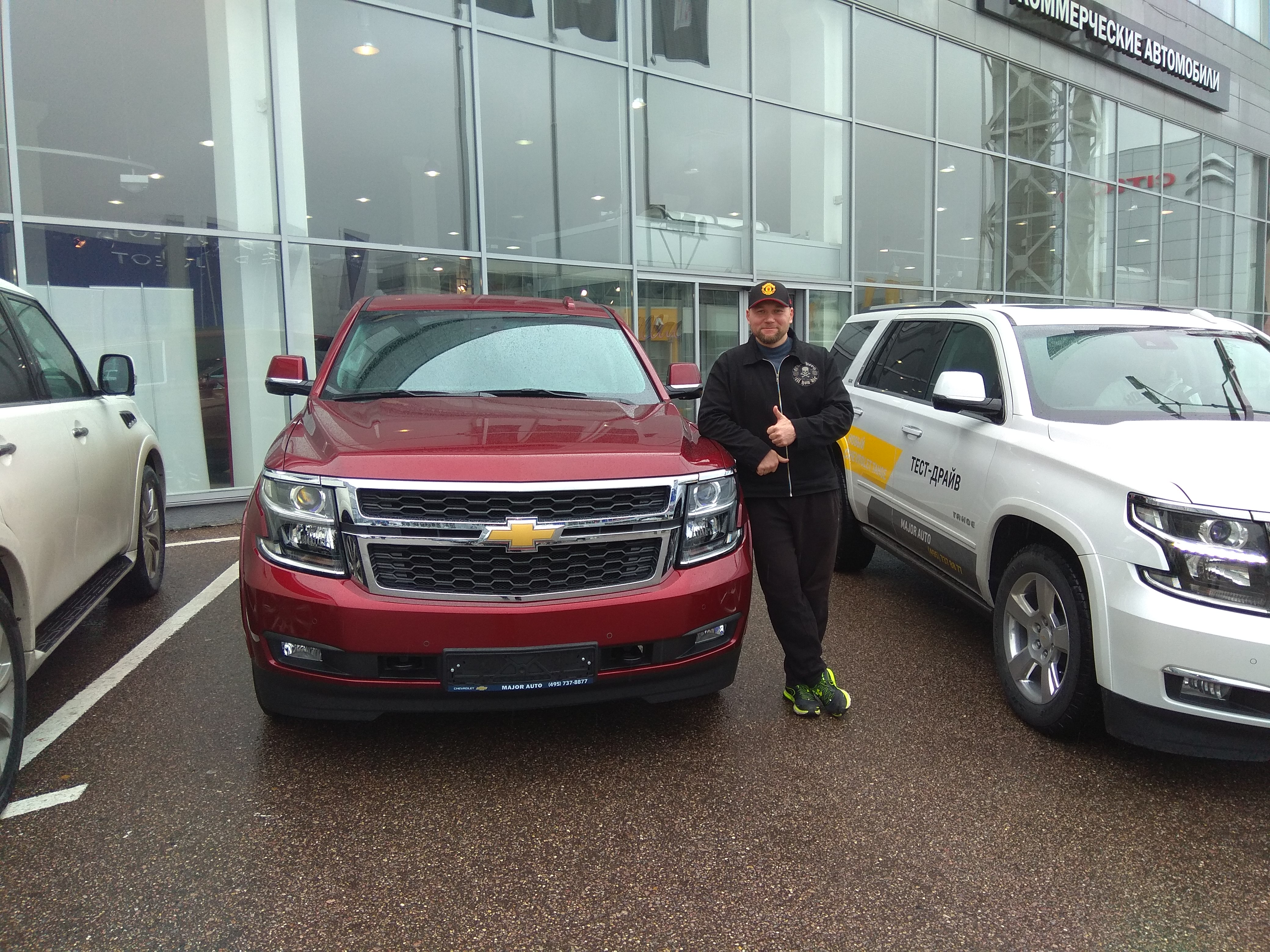 Я приехал вечером, после работы, он говорит - "Час назад контора с центрального склада GM выкупила Тахо, их всего два в РФ в таком цвете осталось, решили забрать один в салон." Тем более именно красный шёл ограниченной серии с некоторыми доп. опциями от LTZ. Это холодильник, навигатор, и монитор для задних пассажиров.