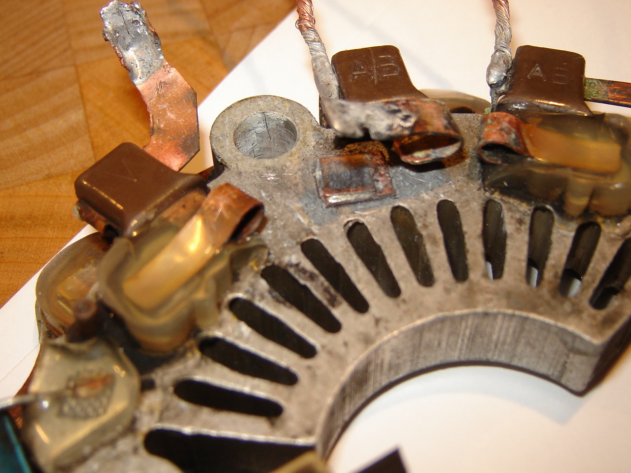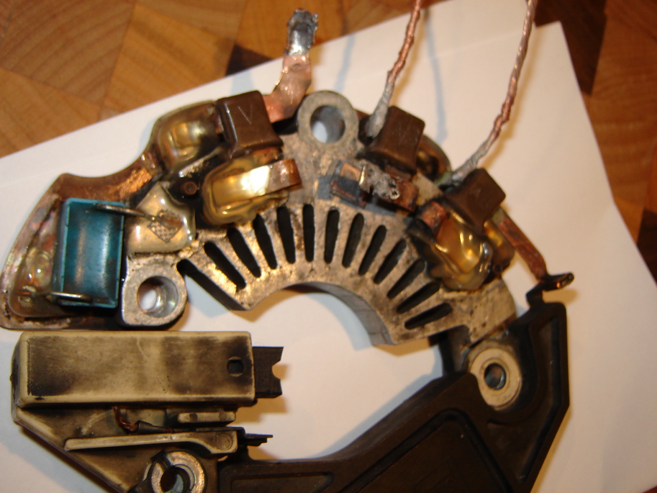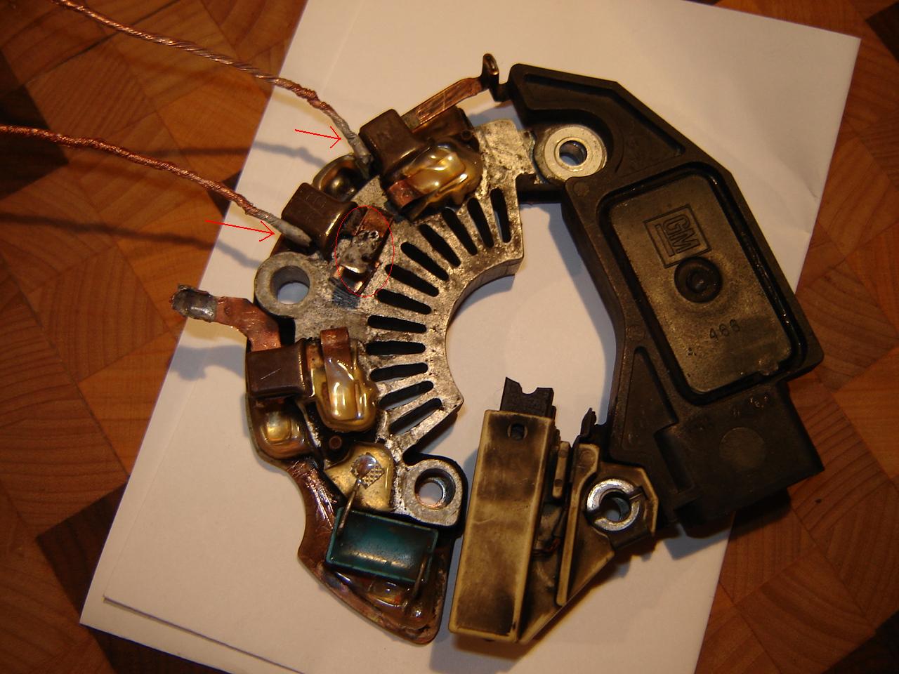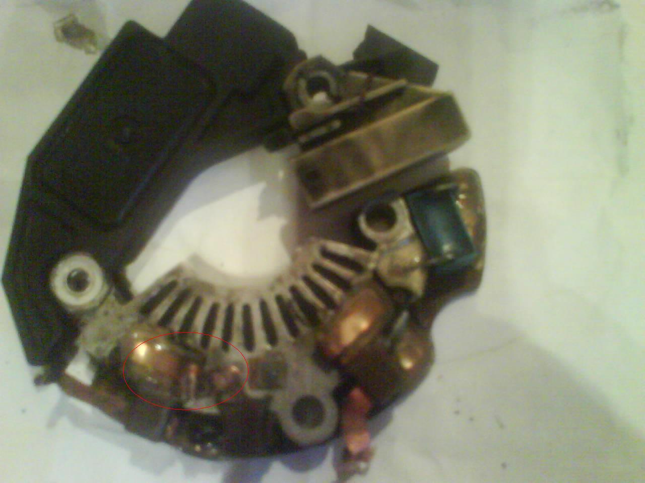 Умер генератор, предварительно некоторое время поиздавав предсмертные стоны. Изъял, расчленение идёт как положено. Щётки живы, на вид всё путём. Есть одна видимая "распайка" на выходе обмотки.